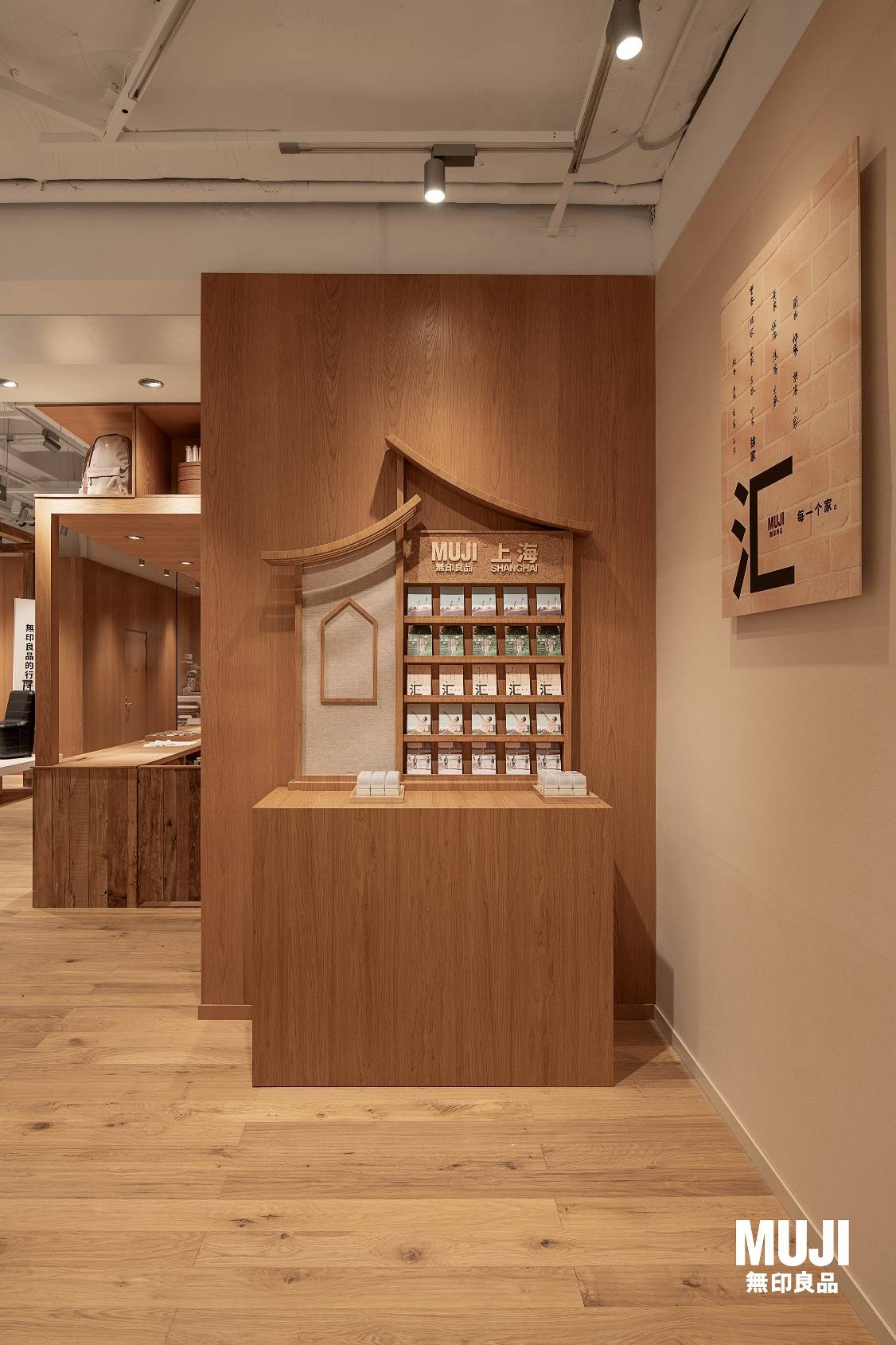 MUJI上海新六百YOUNG城市旗舰店的设计风格体现了MUJI对在地文化、融合汇聚的独特理解。在店铺内,各展示区域融入上海老洋房花窗元素,结合半透材质,提升了空间的通透感与层次感。通过木材、石材、织物等材料的叠合,MUJI将人文与风物,日常的珍贵与城市的记忆,全都融汇其中。