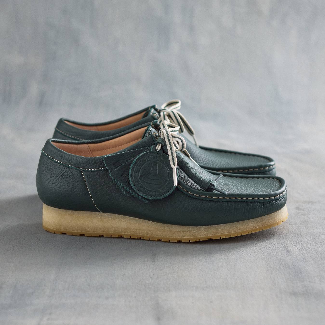 Wallabee 2604特别系列告别了传统麂皮质感,转向高光泽漆皮的未来主义表达。银色与海军蓝两种配色赋予鞋面犹如宇航服外壳的科技光泽,标志性的手工缝制莫卡辛结构仍被完美保留,形成过去与未来的迷人对话。Clarks Originals为其搭载了Vibram橡胶外底,赋予卓越抓地力与耐久性。随鞋附赠专属袋鼠动物吊牌、纪念吊牌以及三副可替换圆形鞋带(平纹、白色斑点、白色条纹)。鞋跟处压印的Wallabee标志,则是留给玩家的终极认证密码。这无疑是一双真正的收藏级单品,以高规格工艺与材质向经典致敬,并坚定地指向更远的未来。