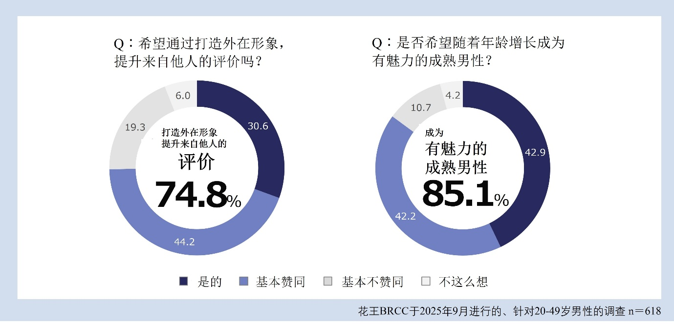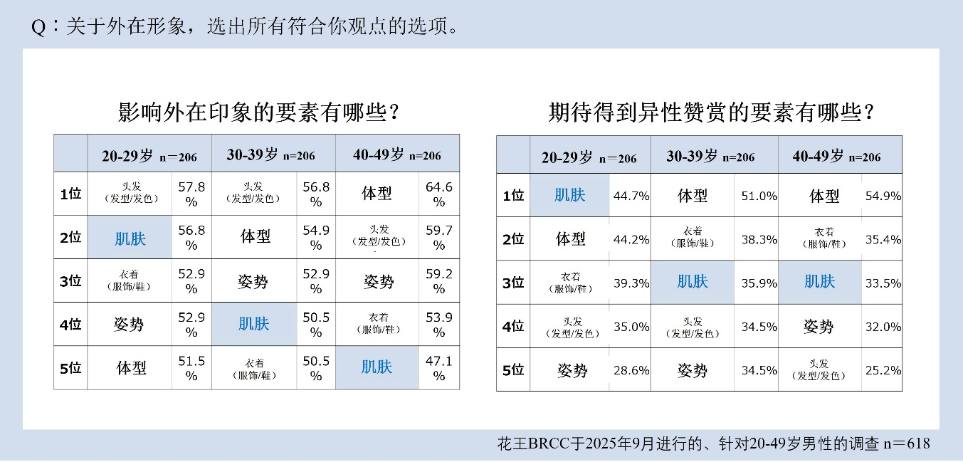 *1 花王BRCC于2025年9月展开的、针对20~49岁男性的美容意识在线调查,样本数 n=618