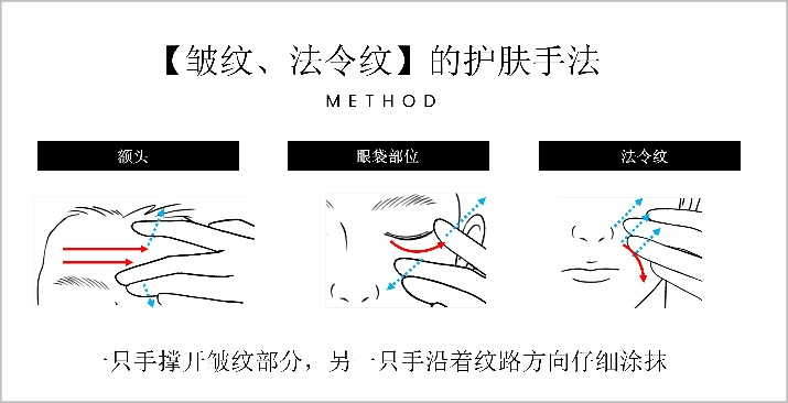 建议尝试以2~3个月为周期坚持护理。针对皱纹和法令纹,可尝试食指与中指轻轻撑开皱纹,进行“展开式涂抹”。无论是乳液、面霜、美容液还是眼霜,在轻微撑开纹路后再涂抹,都能提升产品贴合度。由于这一阶段皱纹问题更加明显,建议搭配使用抗皱美容液。同时,在受到强紫外线照射、肌肤干燥明显时,可通过面膜进行集中保湿护理。